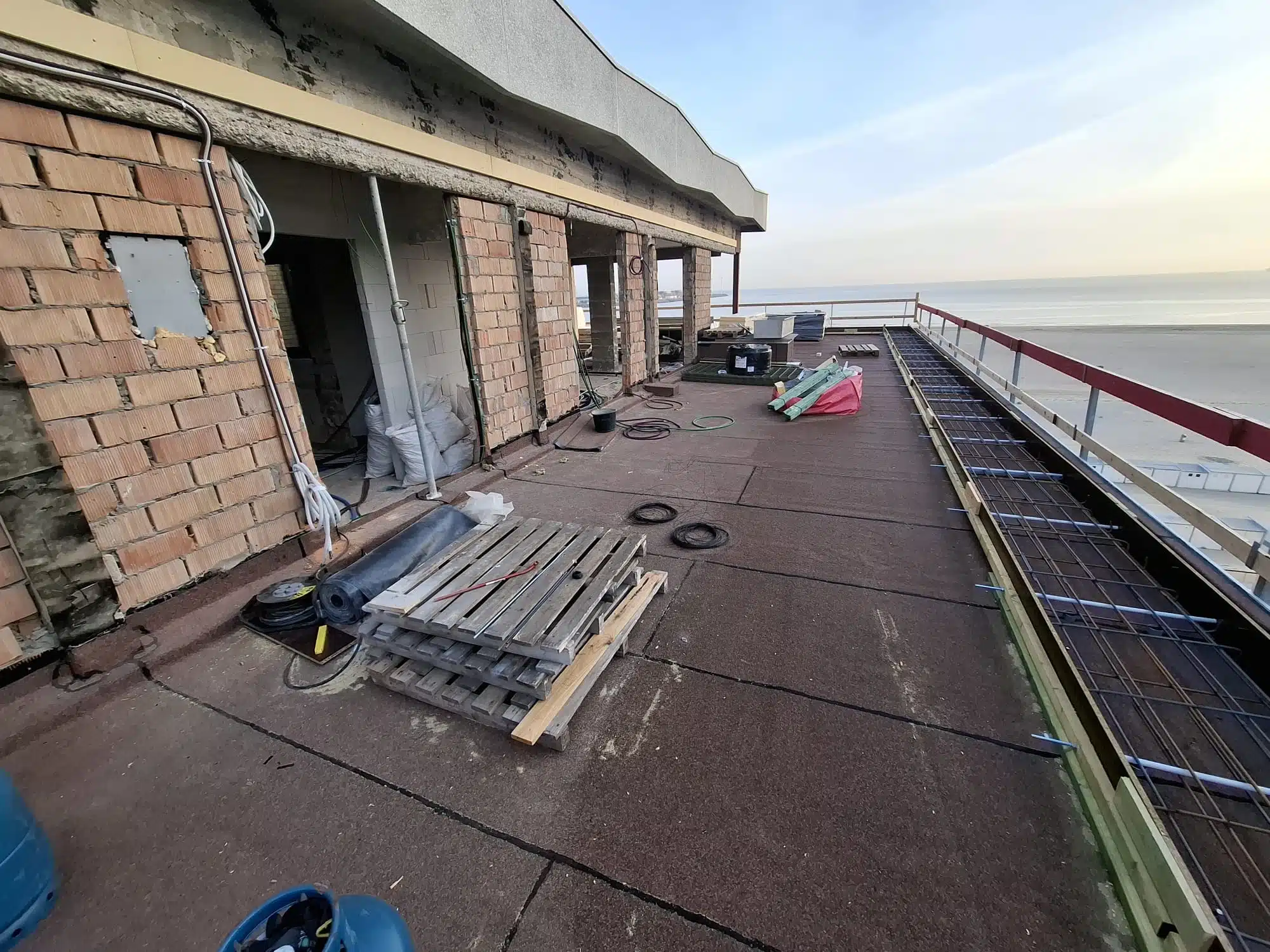 - Aan de zeekant brak ons team enkele betonnen kolommen uit – op advies van het studiebureau – en plaatste poutrellen zodat de volledige gevel opentrok naar zee 🌊